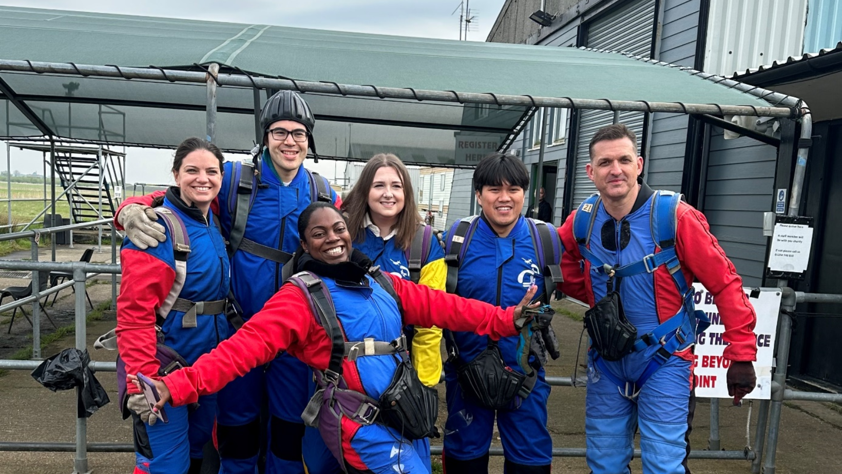 The six skydivers consisted of Shevonne Weir, Stephanie Leszman, Lucy Nicholson, Joshua De Luna, Oliver-James Topping and Partner, Matthew Edwards who was nominated by his very own private client team.
