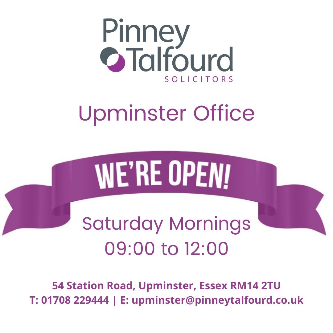 We are delighted to announce that from Saturday 2nd October, we will be re-opening our Upminster office on Saturday mornings from 9am to midday.